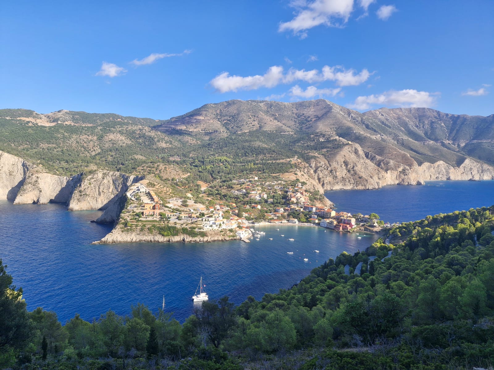 אמא לפעמים קצת מלגלגת על אנשים שחוזרים מחול עם המון ספורים ותמונות ולרגע נדמה שכל סיבת הטיסה שלהם הייתה שיוכלו להשוויץ, באופן שכזה ימי הטיול הראשונים עשויים להיראות מאכזבים מעט, אם כל היופי שבאי והנחמדות של האנשים נראה לי שכמעט שום דבר המיופי הזה לא ניתן לתפוס בתמונה, עד היום הרביעי. אסוס הוא המקום בקפלוניה להצטלם, ואף שאני חושש בהתחלה שזה יהיה כל מה שיהיה שם הרי שחששותי מתפוגגים במהירות. כדי להגיע לשם אנחנו שוכרים רכב רב עוצמה, ורייצל נוהגת אותו בכישרון רב בדרכי ההרים הקשות והתלולות, אין בקפלוניה כבישים מהירים כלל רק דרכי הרים צרות, שני המקומות היחידים שניתן לעבור ביניהם בקלות הם ארגוסטולי וליקסורי, המחוברים במעבורת מהירה. זמן קצר לפני אסוס אנו עוצרים לתצפת על חוף מירטוס מגובה המצוקים האדירים המקיפים אותו, הכפר אסוס עצמו הנמצא על לשון יבשה צרה בין הרכס של מבצר אסוס לשאר האי צבעוני ומקסים, מלא סמטאות קטנות ושיחים אבל הוא רק חלק מהסיבה לבקר במקום המפרץ הקטן שלו בו ניתן לשנרקל בין חופים קטנים ומערת סלע, והעליה למבצר מוסיפת עוד פלאים רבים, הדרך העולה למבצר מרוצפת אבנים ומתפתלת בינות לעצי האורן ובינות נופים המפוארים המשקיפים על צוקים המתנשאים מעל הים ומשתקפים בו מייצרים אלפי גוונים של מים.