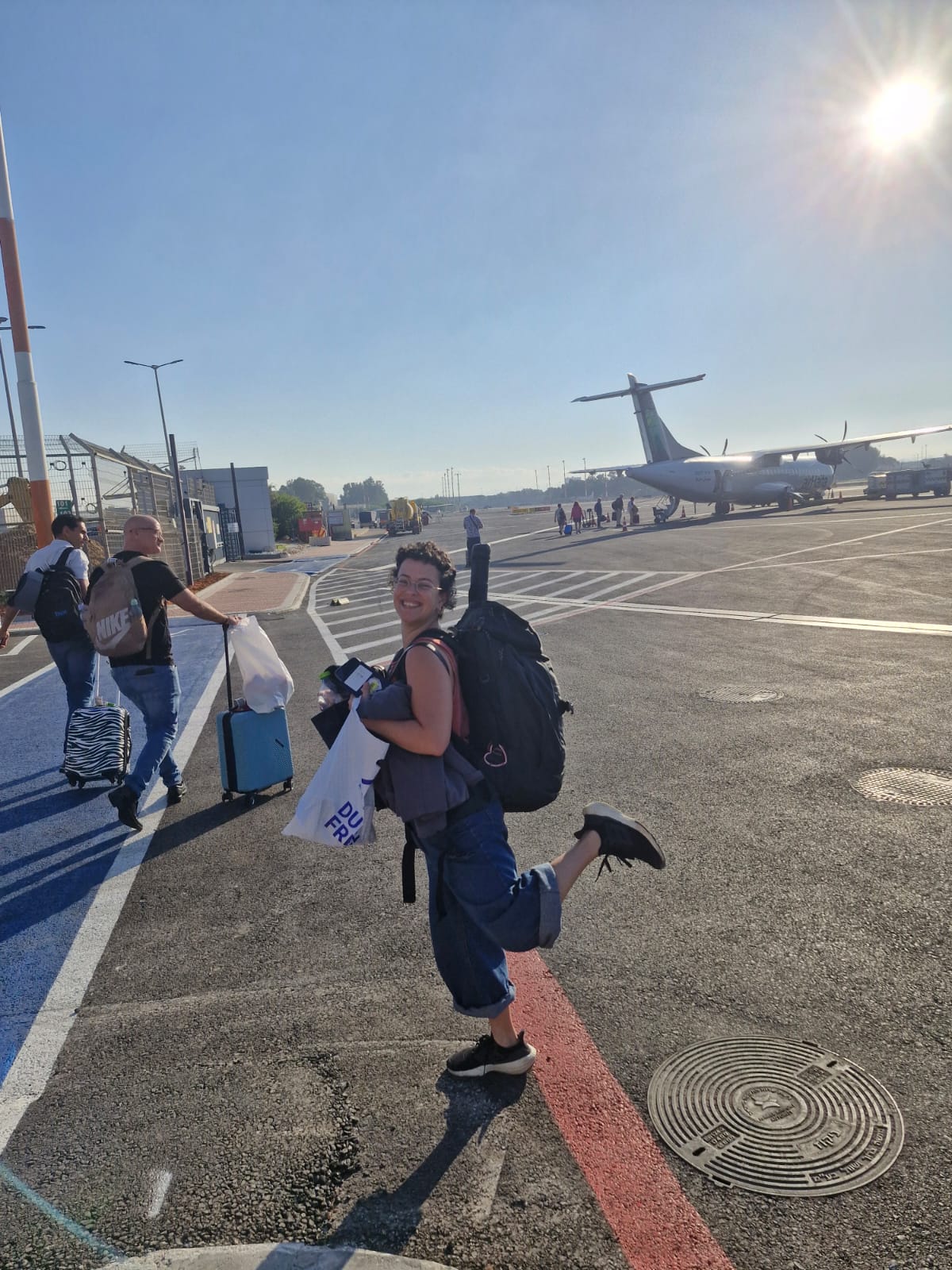 אנחנו יוצאים מחיפה ביום ראשון מוקדם בבקור, שדה התעופה הקטן נותן תחושה קלילה ולא פורמלית ולמרות שהחליל של רייצל והמחשב שלי מעוררים חשדות קלים אנו מגיעים ללא בעיה אל המטוס. בדרך הדיילים מציעים לנו שוטים של ערק. ומזמינים את כל הנוסעים להרים כוסית. מצד אחד לחופש שבטיול ומצד שני לשיבתם של החטופים ובטוחנם של החיילים בחזית. המתח הזה בין הרצון להתנתק לבין הדאגה ילוו אותי לאורך המסע.